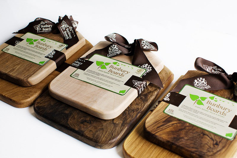 From the pristine woodlands of Lisnavagh Estate come the finest hand-crafted chopping boards in Ireland, made from 100% sustainable Irish wood. Each board is stamped with a unique code that allows you to download your custom Tree Report, showing you the location, species, and life story of the specific tree that gave you your Bunbury Board.
